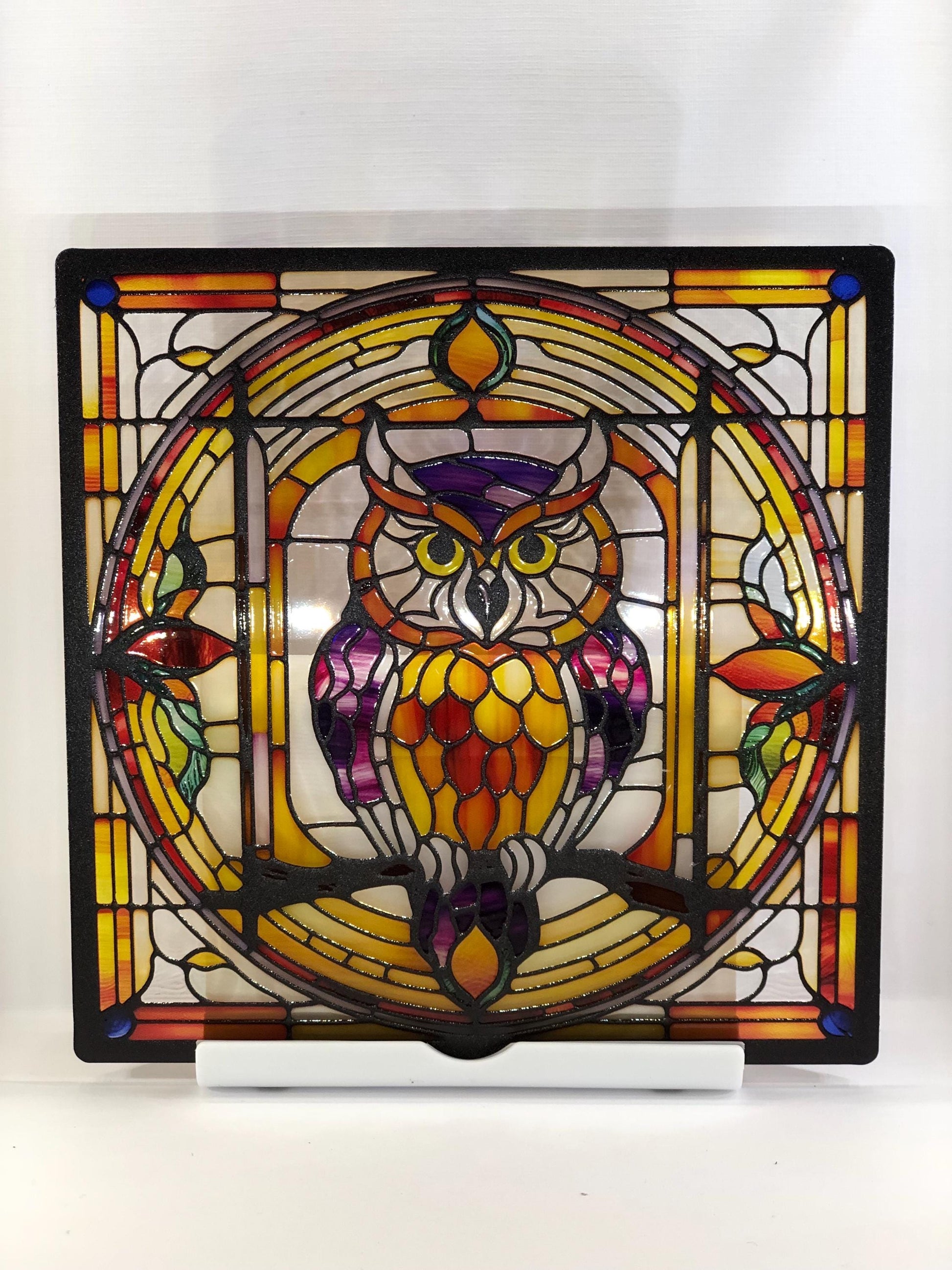 Vitrail Hibou – Décoration de Vitre Enchantée – Cadeau Original pour Passionnés de Nature et de Mystère