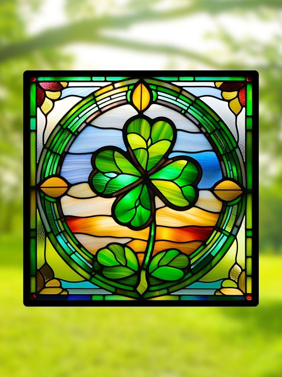 Vitrail Trèfle à Quatre Feuilles – Décoration de Vitre Porte-Bonheur – Cadeau Chance