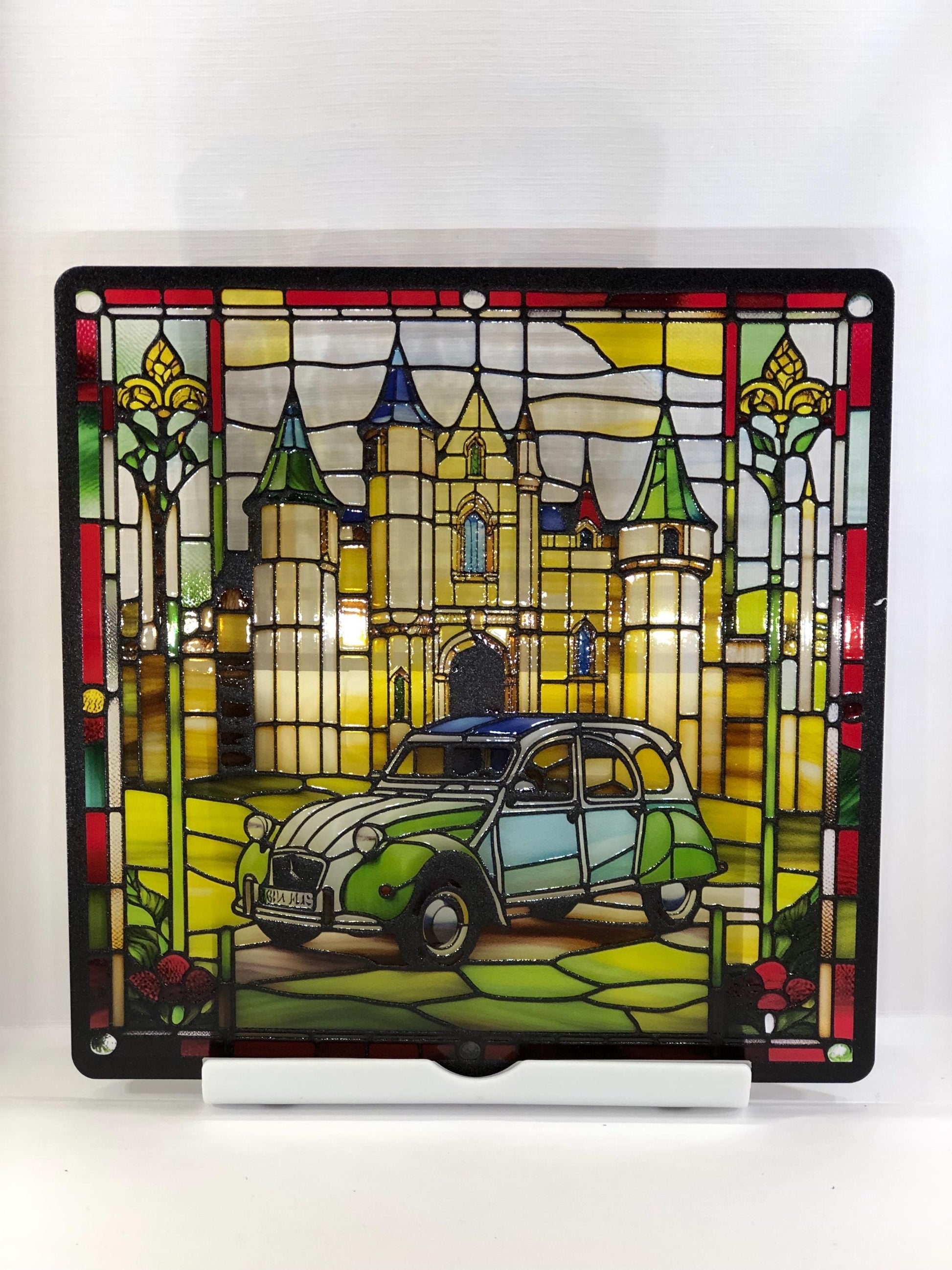 Voyagez dans le temps avec notre collection unique de vitraux inspirés des voitures anciennes et de collection. Chaque pièce célébrant les lignes emblématiques, les chromes brillants et le charme rétro de ces véhicules d’époque.
